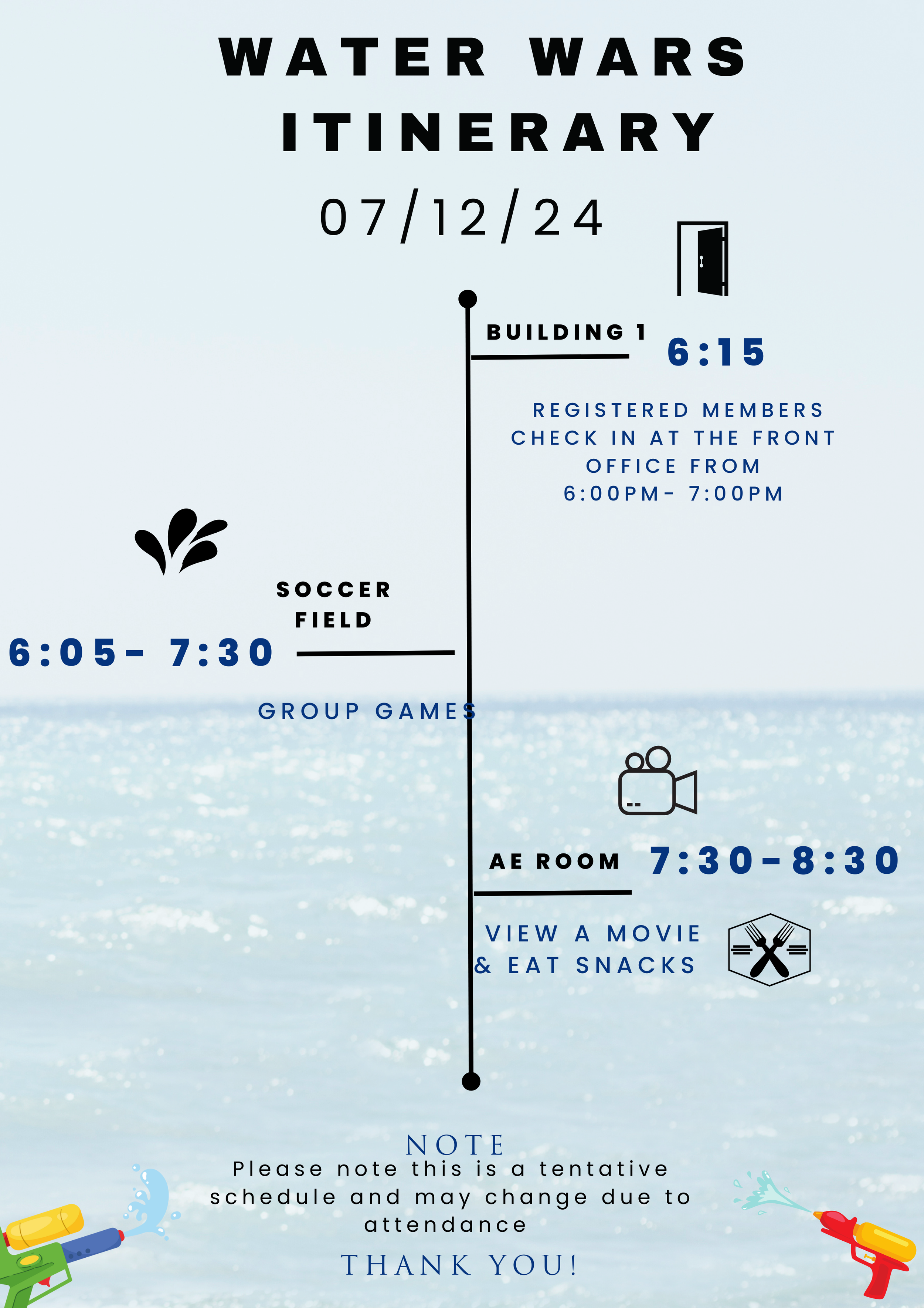 “Water Wars” - Hosted by the Dance Program Friday, July 12, 2024 6:15 PM 8:30 PM Community Youth Center 2241 Galaxy Court Concord, CA, 94520 United States (map) Google Calendar ICS Sign Up:Email: Info@cycmail.org